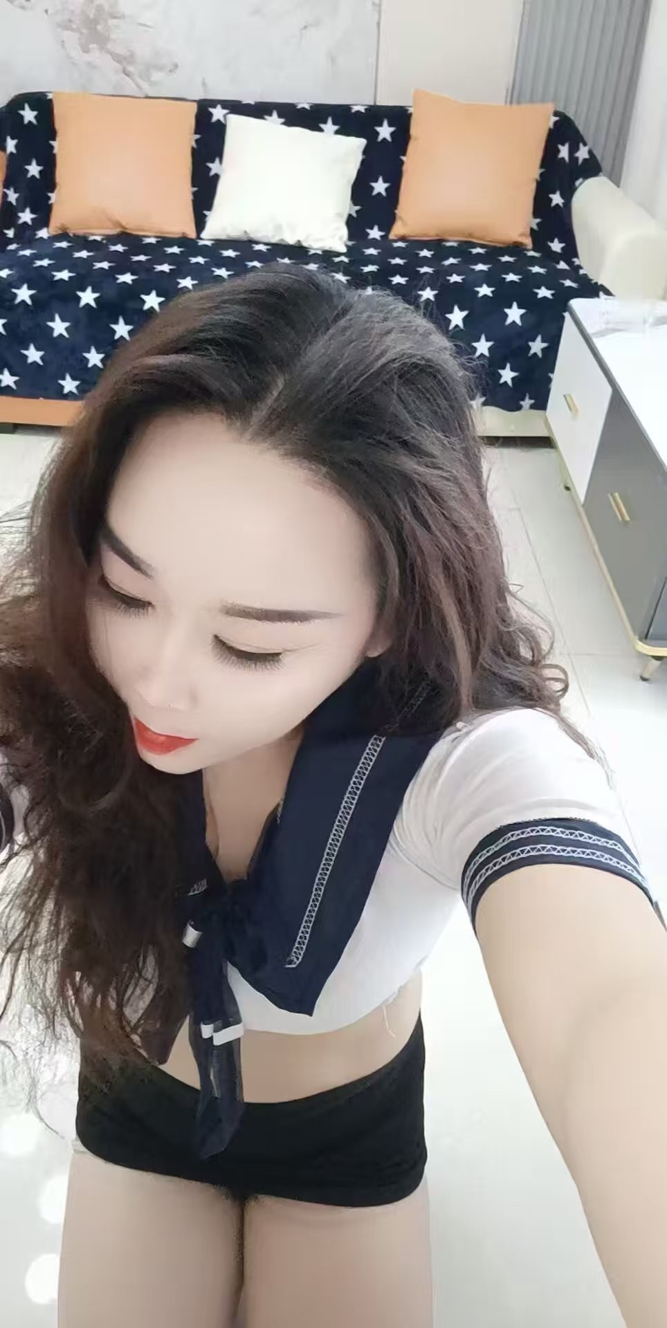 遥控上楼进屋,老师穿着超短连衣裙,骚。进屋聊了几句,然后进浴室,老师帮洗,很认真的洗鸡巴菊花和脚。